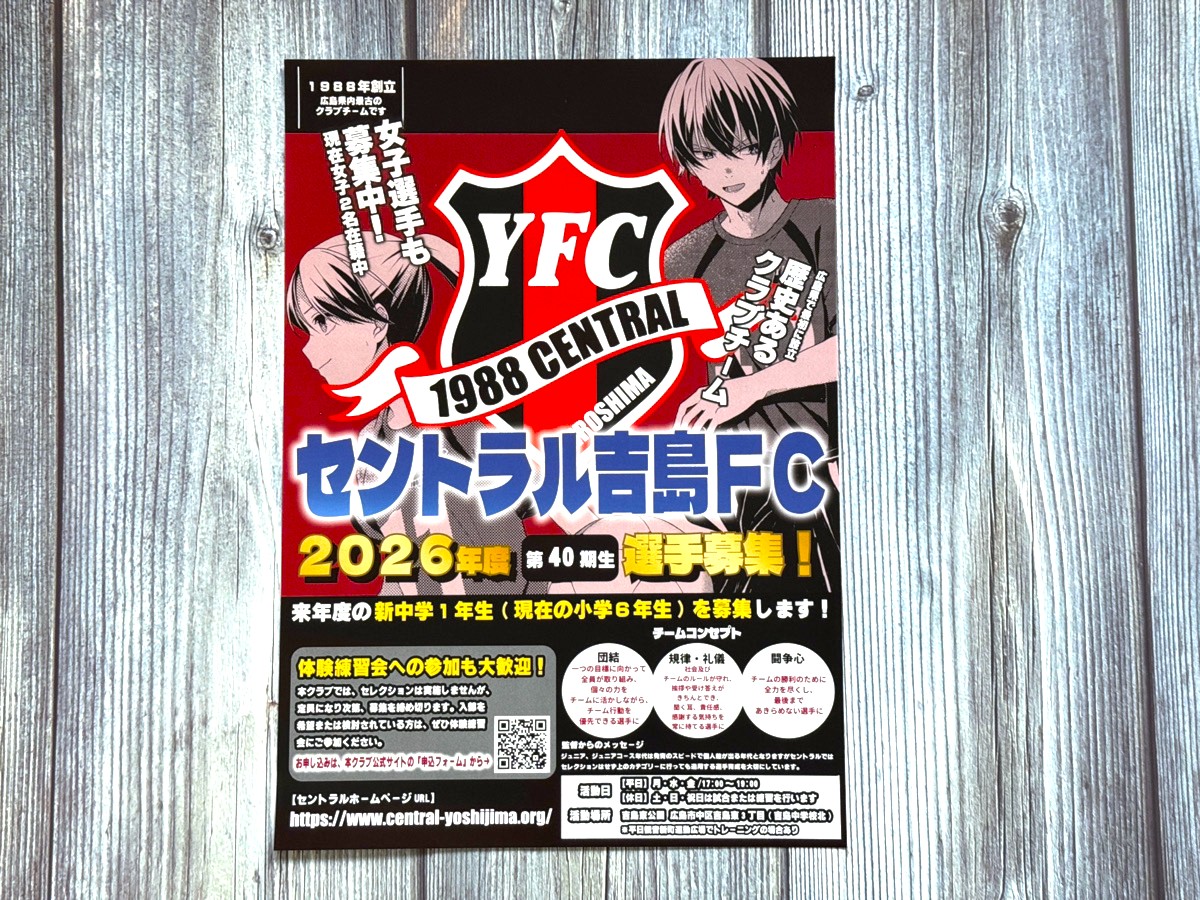 イラストとロゴが印象的なチラシは、広島で歴史あるサッカークラブチームからのご依頼で制作させていただきました。